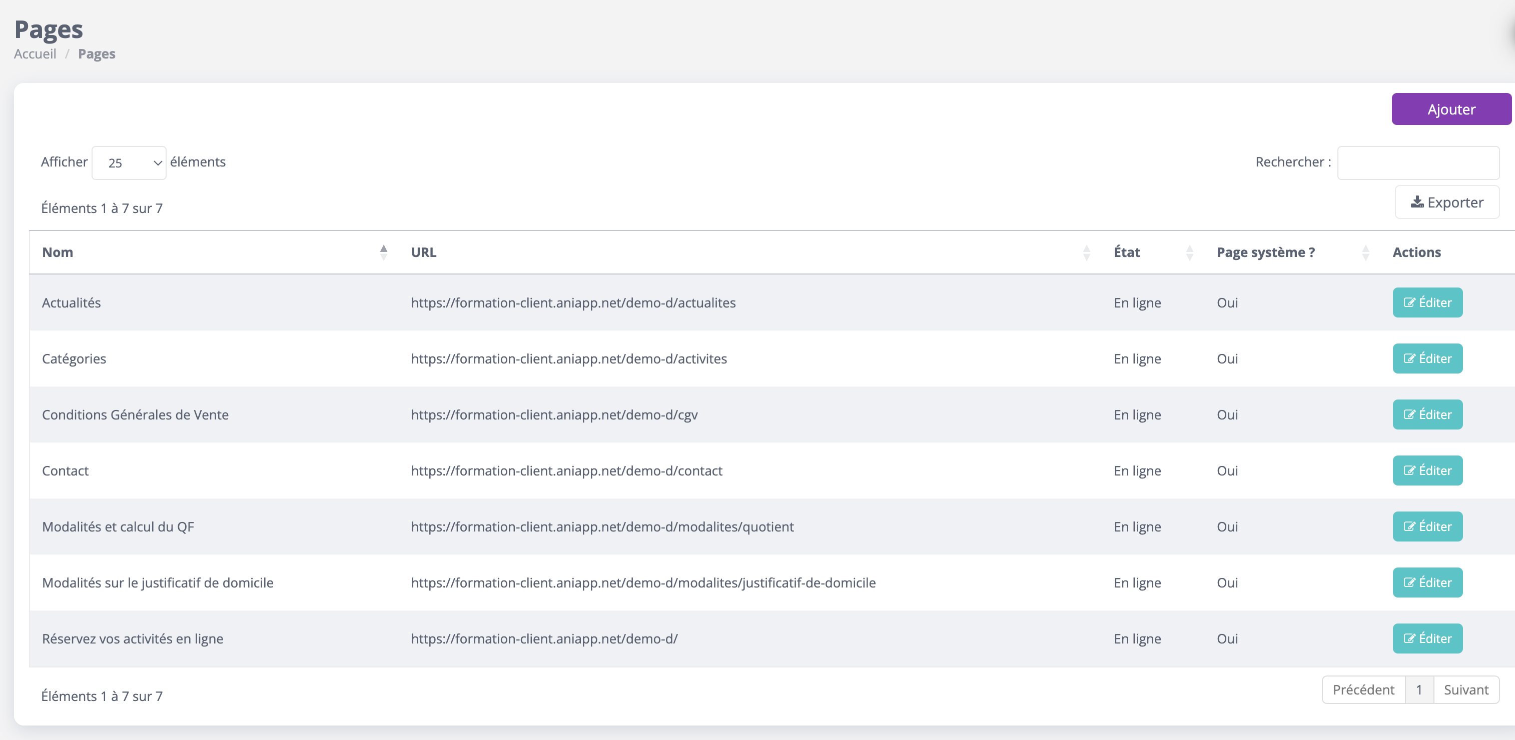 Dans le tableau « Pages », cliquer sur « Ajouter »